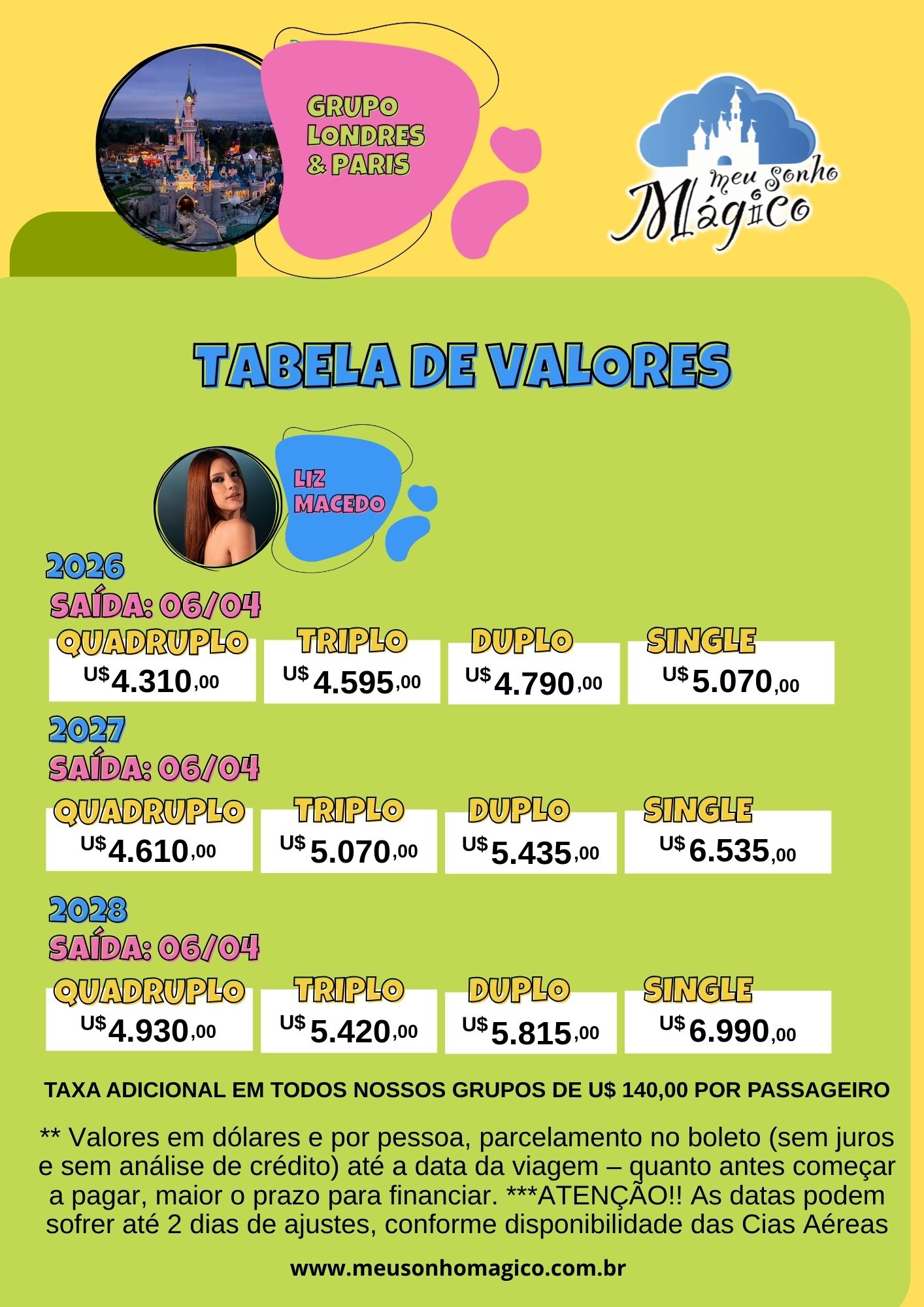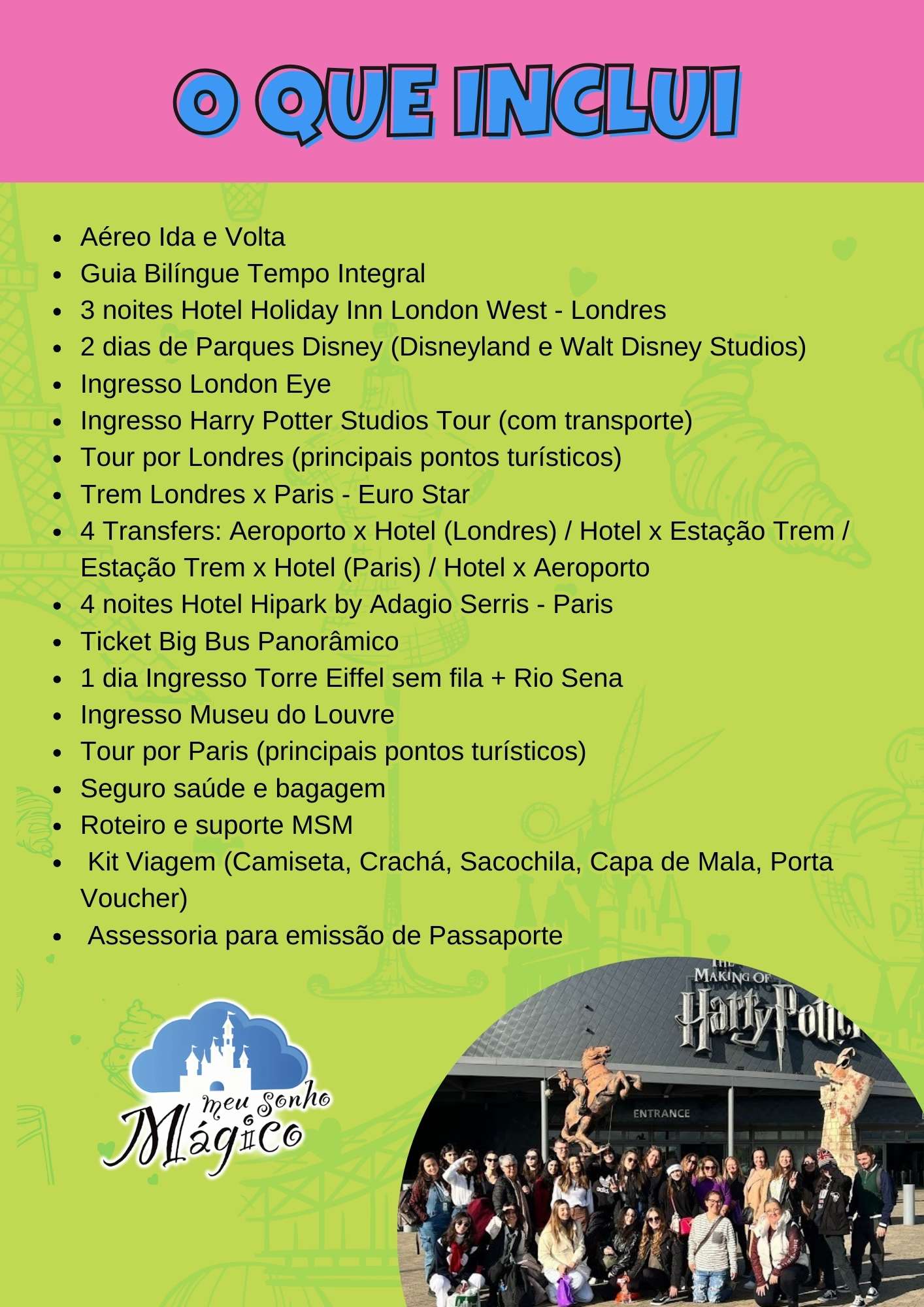 OBSERVAÇÕES: Enviar cópia dos documentos de todos os passageiros. RG, CPF, Passaporte, Visto e comprovante de endereço para o e-mail vendas@meusonhomagico.com.br